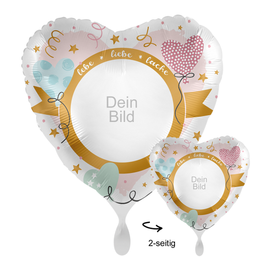 Fotoballon Ø 43cm Herzform - Lebe-Liebe-Lache