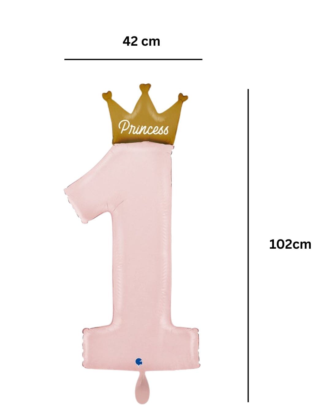 Der XXL Folienballon in Form der Zahl 1 in Pastell Rosa bzw. Hellrosa mit einer golden Krone ist der perfekte Blickfang für den 1. Geburtstag der kleinen Prinzessin. Aufgeblasen mit einer Ballongröße von 42x102 cm sorgt dieser XXL-Ballon mit der Zahl 1 und goldener Krone für einen unvergesslichen Moment.