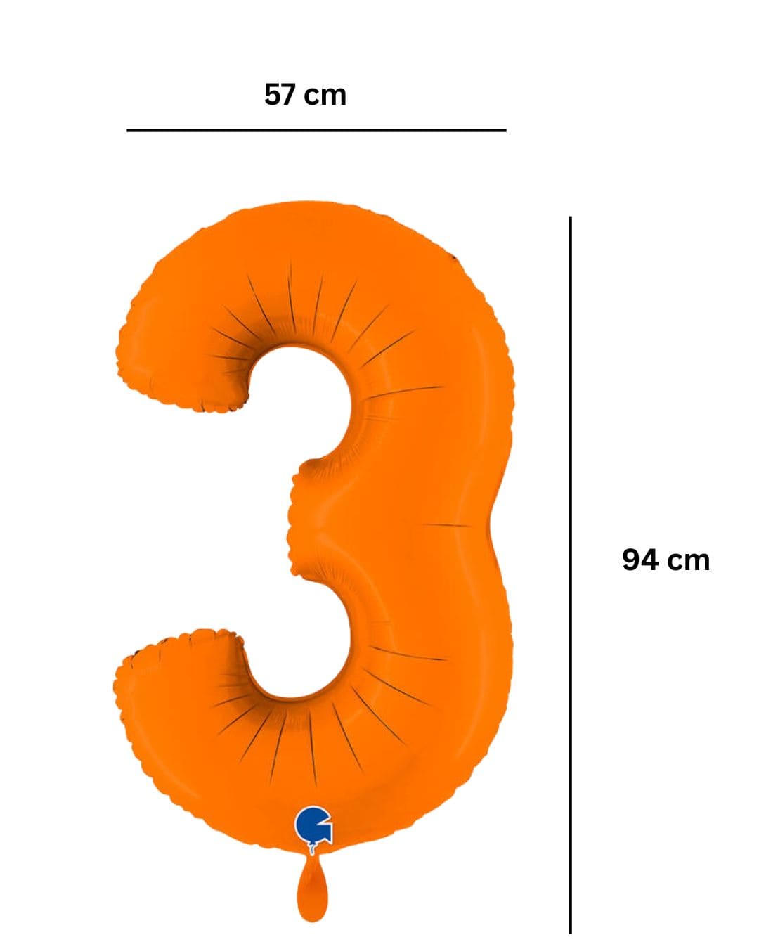 Ballon XXL - Zahl 3 - Matt Orange - 57x94cm