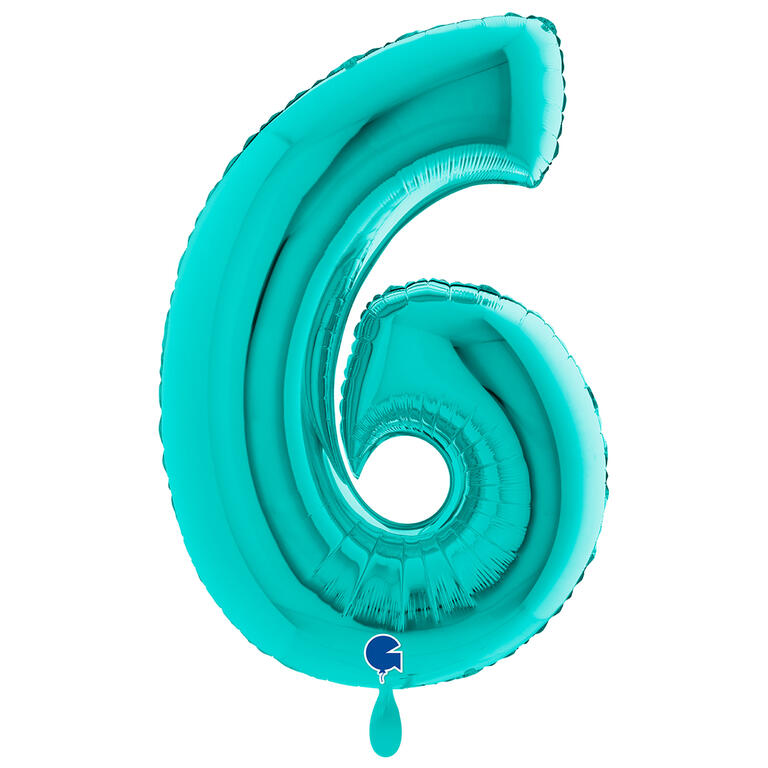 Der XXL Folienballon in Form der Zahl 6 in Tiffany ist der perfekte Blickfang für Geburtstagsfeiern, Jubiläen oder andere festliche Anlässe und sorgt für eine stilvolle Atmosphäre.